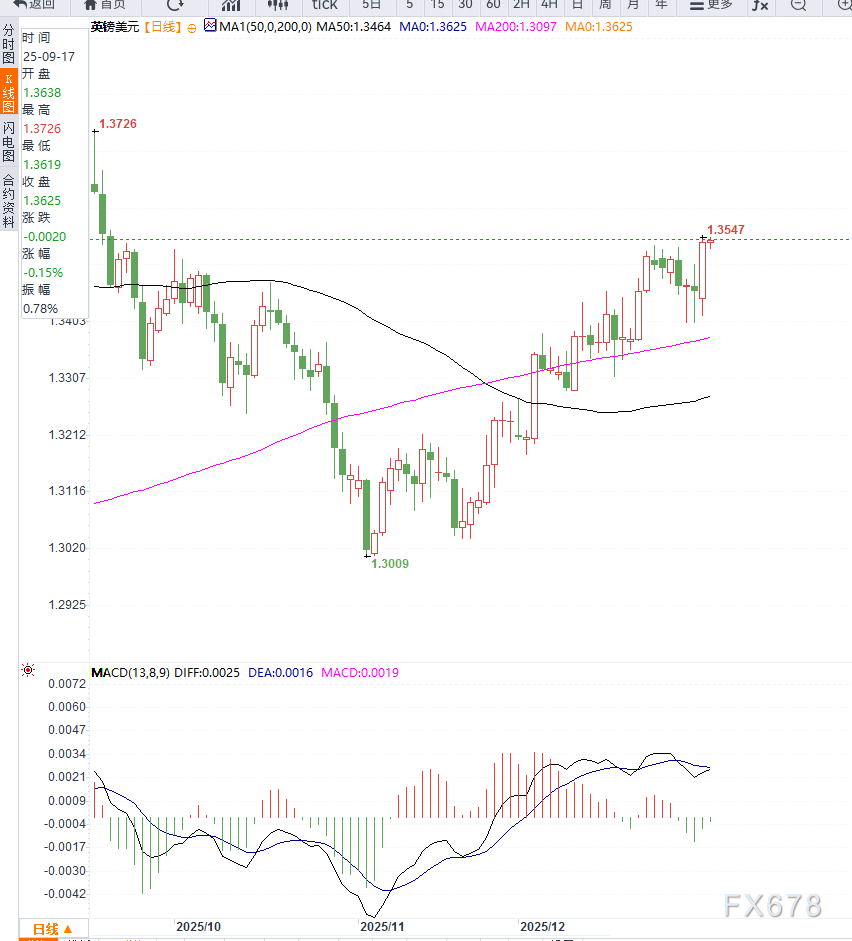 综合来看,英镑兑美元在高位出现小幅回调属于正常整理范畴。美元虽因避险需求获得阶段性支撑,但在降息预期压制下难以形成趋势性上涨;